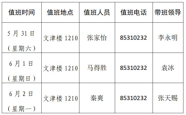 3044永利集团2025年端午节值班安排表