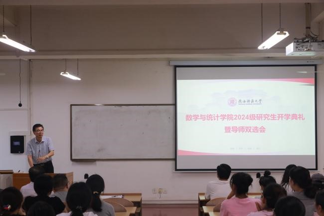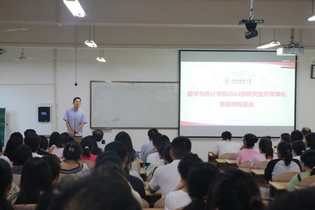随后,2024级新生代表盛宏,他满怀激情地表达了自己对数学专业的热爱和对未来研究生生活的憧憬。他呼吁全体新生在努力提升专业能力的同时,更要注重自我修养和品德锤炼,培养强烈的责任心和使命感,为成为一名优秀的科研工作者而不懈奋斗。