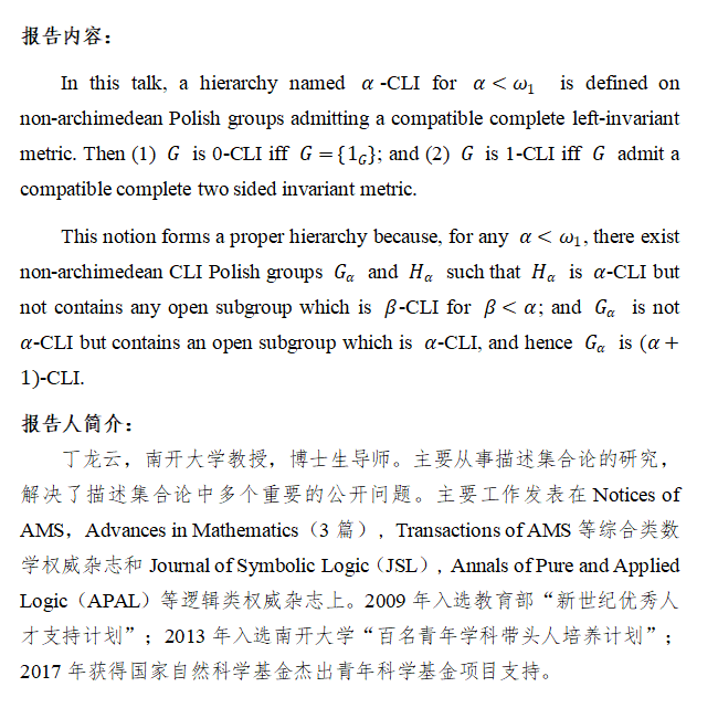 • 讲座人: 丁龙云 教授