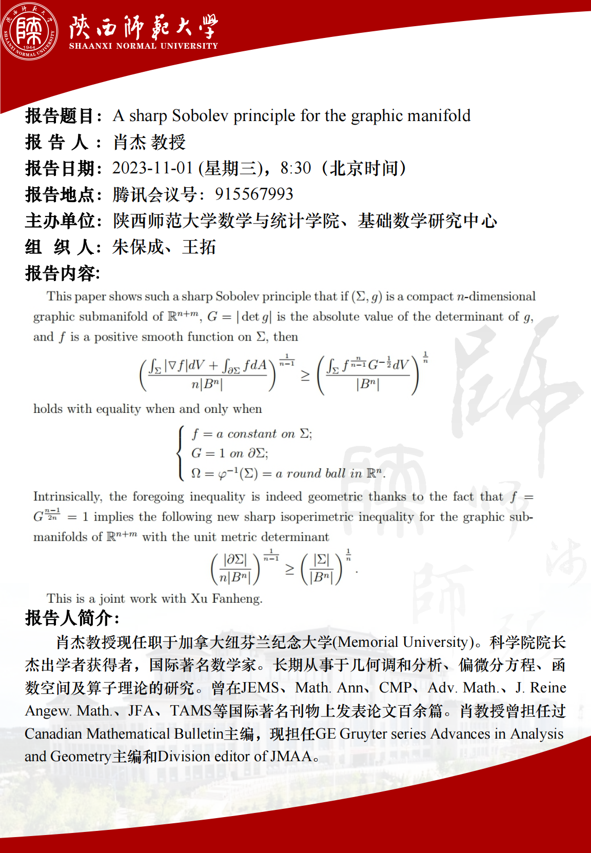 • 讲座日期: 2023-11-1