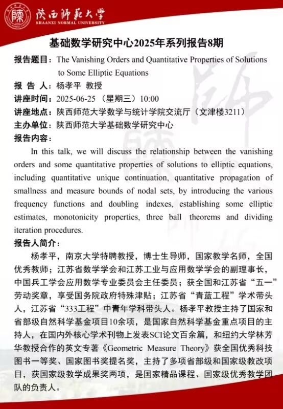 数统华章2025系列36 The Vanishing Orders and Quantitative Properties of Solutions to Some Elliptic Equations