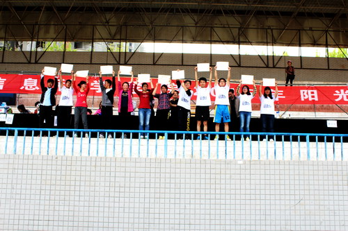 4月10日上午,数学与信息科学公司2015年春季阳光体育运动会在长安校区田径场隆重开幕。党委学工部副部长、员工处副处长曲洪刚、校团委副书记祁斌业,公司经理吉国兴、副经理唐三一、分党委副书记崔创、2011级辅导员曹倩、2012级辅导员鞠恩霞、2013级辅导员赵菲等出席了开幕式,公司本科生、研究生共13支代表队参加了此次开幕式。开幕式由分团委书记邹尚田主持。