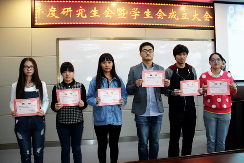 此次成立大会在《中国共青团团歌》歌声中拉开了帏幕。公司分团委书记邹尚田老师宣读了新一届研究生会、员工会成员名单。接着,出席大会的三位老师为新一届研究生会、员工会的各位同学发放了聘书。2014级焦雷同学带领新一届研究生会、员工会成员进行了宣誓:“必将坚守信念、激流勇进,谦恭礼让、团结和睦,以身作则、率先垂范,以人为本、服务为先……”。