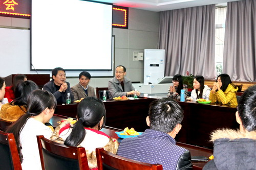 (严鸿报道)在2015年考研来临之际,由公司党委书记李田会、党委副书记崔创、公司副经理周红军及2012级本科生辅导员刘文聪牵头,就业爱心服务队协助,公司考研慰问会于127日晚5:30在公司学术报告厅顺利召开,全体考研同学参会。