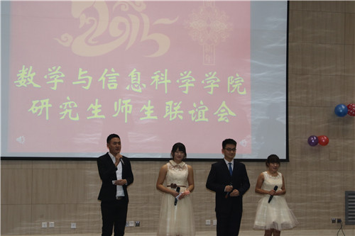 1216日晚,公司在长安校区新勇活动中心成功举办了2015年研究生师生联谊会。经理吉国兴、分党委书记李田会、分党委副书记崔创,公司教师吴保卫、李生刚、曹怀信、李万社、李三平、罗新兵、杨海龙,研究生辅导员邹尚田、科研秘书于维、教学秘书周璐等老师及2015级全体研究生参加了此次联谊会。
