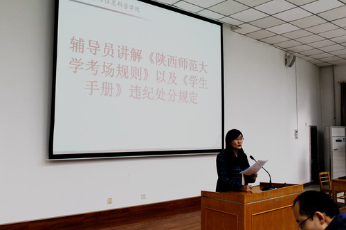 大会第一项,教学副经理周红军从六个方面对同学们进行期末考试动员。一、考试前及考试期间排除干扰,安心认真复习备考;二、尊重监考老师,服从监考老师安排;三、牢记考试科目、时间、地点;四、按时到达考场,将书包、复习资料等放在指定位置,尽快就坐;五、带好员工证、身份证,并放置在桌面左上角,以便监考老师查验;六、认真考试并遵守考场规则,严肃考场纪律,树立诚信考试为荣的良好心态,若发现违纪现象,一律严肃处理。随后,周红军老师向同学们列举了往年普遍存在的七项问题:一、所带证件无效;二、考试迟到;三、物品未按要求统一摆放;四、证件摆放混乱;五、极少数同学调换座位卡;六、手机未关机;七、本校区所有考场均为标准化考场,均装有监控设备。大会第二项,辅导员鞠恩霞、陈士宁分别讲解《3044永利官网考场规则》以及《员工手册》违规处分规定,希望同学们引以为戒,诚信应考。