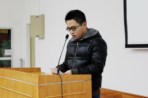 大会第三项,由2013级数学与应用数学一班杜永超、2014级数学与应用数学创新实验班杨炫华分别作为员工代表宣读《3044永利官网员工考试诚信承诺书》,号召同学们在考试中恪守诚信,严于自律。