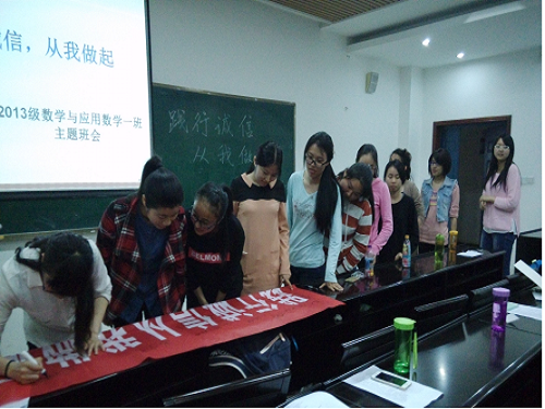2013级数学一班“践行诚信 从我做起”主题班会成功举办