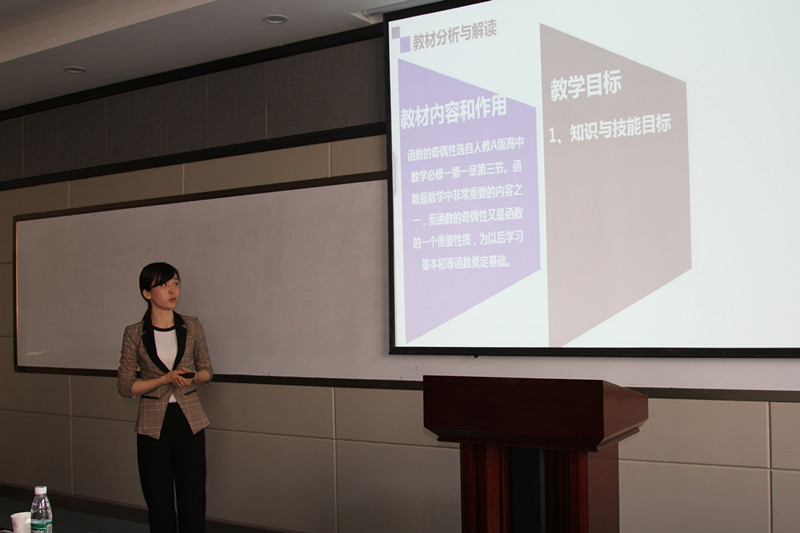 比赛主要考查员工对数学教育领域有关问题的理解把握和课堂教学技能的展示,分说课大赛、讲课大赛和板书大赛。说课大赛主要从教师口语、教态、授课内容设计、重难点把握、教法学法等方面对选手进行综合考核。选手从高中数学课程中选择某一内容进行5分钟的说课,借助多媒体课件选手们通过准确精炼的语言表达,独特新颖的教学方法,向评委老师及其他同学们展示了过强的教学技能和教师风采;讲课比赛主要从讲课技巧、教态、语音语调、板书设计等方面对选手进行考核。选手从高中数学课程中选择某一内容进行15分钟的模拟授课,并同时使用多媒体课件和传统板书向评委老师及其他观摩同学们进行课程展示。选手们教态自然大方、讲述详略得当、多媒体应用恰到好处,充分展现了师范生的风采,得到了现场同学和评委老师的肯定。评委老师在每位选手授课结束后分别进行了总结及点评,在对每个参赛的选手予以肯定的基础上,提出了改进建议。