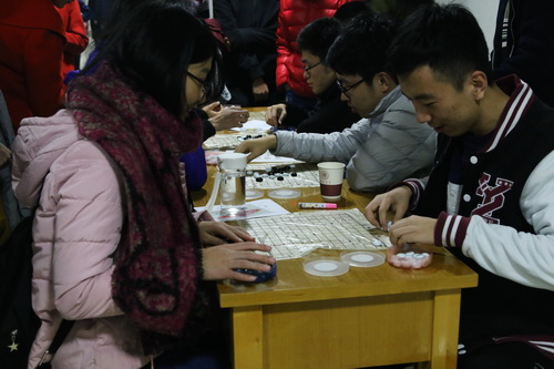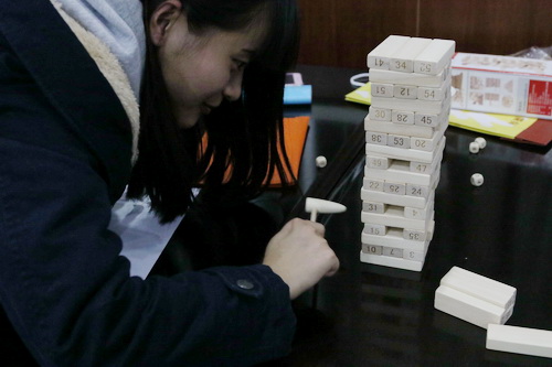 与此同时,分会场的游艺会也吸引了众多同学的关注。游艺会利用模拟社会的形式,参与者通过游戏赚取金币并可以用其兑换食品或日常用品。游戏包括数字谜、正话反说、扑克高塔、理想环、我为歌狂、心理游戏、极限挑战、你画我猜、五子连环等。心理游戏,同学们组队参赛,必须相互配合、相互信任才能够顺利通关。理想环为投篮游戏,那些能够精确计算角度,配合师大力度的同学总是能够大展身手。整个游艺会场地气氛活跃,非常热闹。