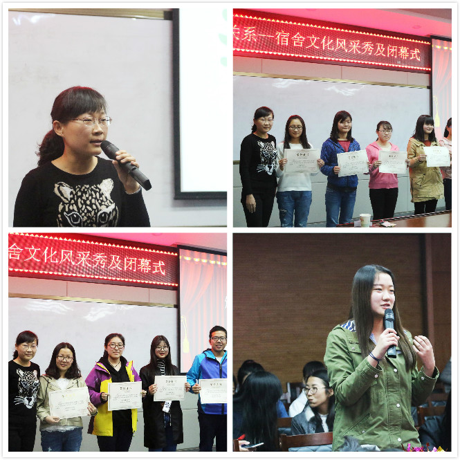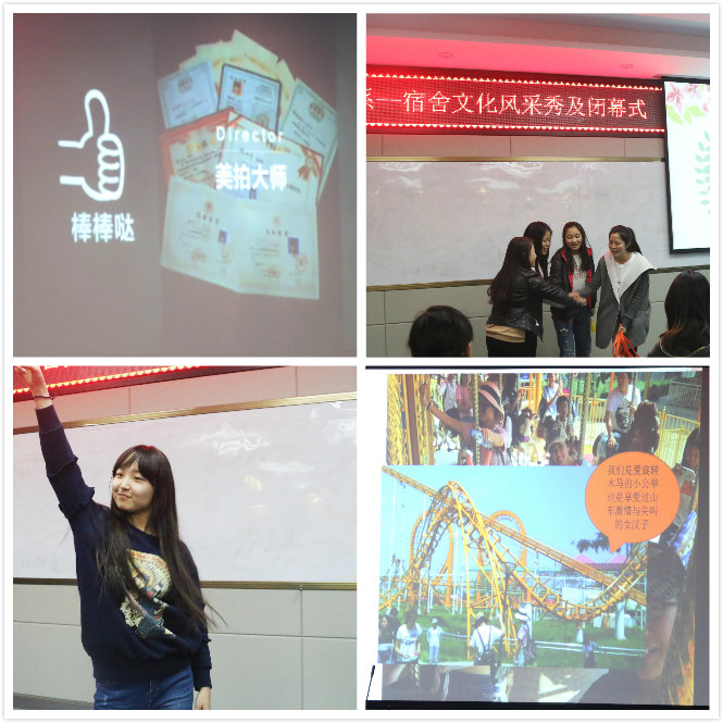 游戏环节结束后,团委书记王鑫老师发表讲话。她指出,宿舍乃温馨的港湾,温暖的小家。宿舍中的每位成员能在学习上互相帮助,生活上相互关心,并肩而行,度过美满充实的四年老员工活。她还提出,此次参与评选的同学们通过其精心准备的节目展示,充分向大家展现了老员工活的缤纷多彩与同学之间深切的友谊,并且表示希望同学们能将这样的精神风貌继续保持下去。