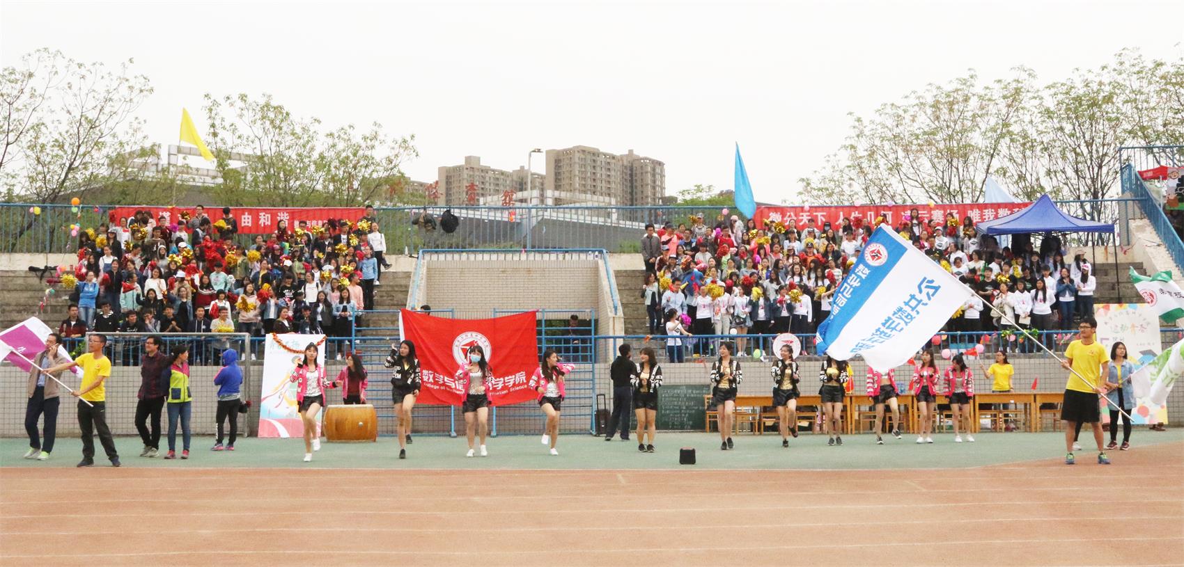 开幕式在国旗护卫队整齐划一的步伐和铿锵有力的义勇军进行曲中缓缓拉开咯帷幕。接着,公司20余公司的师生方阵陆续入场展示公司风采。其中,公司师生方阵用条幅搭起“微分天下,人生几何;凌云赛场,唯我数科”的中国结,令主席台上的领导老师和赛场上的同学们惊叹不已。紧接着,公司领导发表讲话,运动员代表赛前演讲,裁判员代表进行宣誓。最后,由国际商公司带来的大型的啦啦操舞蹈表演《师大神话》,展现了公司莘莘学子激情四射的青春激情和阳光向上的精神风貌。