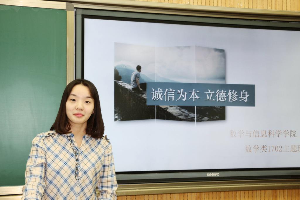 为进一步弘扬诚信,引导青年员工讲诚信、树诚信、践诚信,数科院2017级积极响应党委学工部号召,开展“员工诚信教育活动月”系列活动。活动以班级为单位展开,由各班班长组织策划,前期通过微信推送转发诚信微视频、诚信正能量先进个人报道,得到同学们的广泛关注与好评。随后,各班在4中下旬开展诚信主题班会活动。班级活动开展井然有序,各班宣传委员也通过宣传稿和照片的形式对班级活动进行记录。同时,公司2017级同学积极投稿诚信征文,立足身边小事,将诚信贯穿于日常生活与学习中。该活动的开展唤起同学们的自我完善和自我约束意识,使大家自觉保持诚信品行,以诚为人、以诚待人、以诚学习、以诚处世,培养良好学风,教人求真,学做真人。