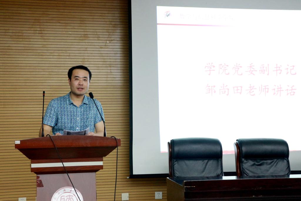 随后,公司党委副书记邹尚田老师进行发言。邹老师首先肯定了本学年2017级同学们在“高数微课”、运动会、早操晨读等方面的表现,也相信同学们能以良好的姿态对待期末考试。通过宣读公司对作弊同学处分的通报,邹老师明确了考试纪律的规定并希望大家引以为戒,严格遵守考场纪律。最后,邹老师介绍公司关于期末考试违纪作弊处分的措施,希望大家自觉树立“不能违纪、不愿违纪、不敢违纪”的意识,希望同学们高度重视,恪守承诺,扎实复习,并就期末考试期间的心态、劳逸结合等方面提出建议。