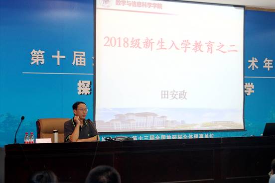 827日晚7点,数学与信息科学公司党委书记田安政在雁塔区崇鋈楼一层学思堂为2018级新生做入学教育报告,2018级新生辅导员鞠恩霞、2015级辅导员张伟超与2018252名新生参与了本次报告会,报告会由党委书记田安政主持。
