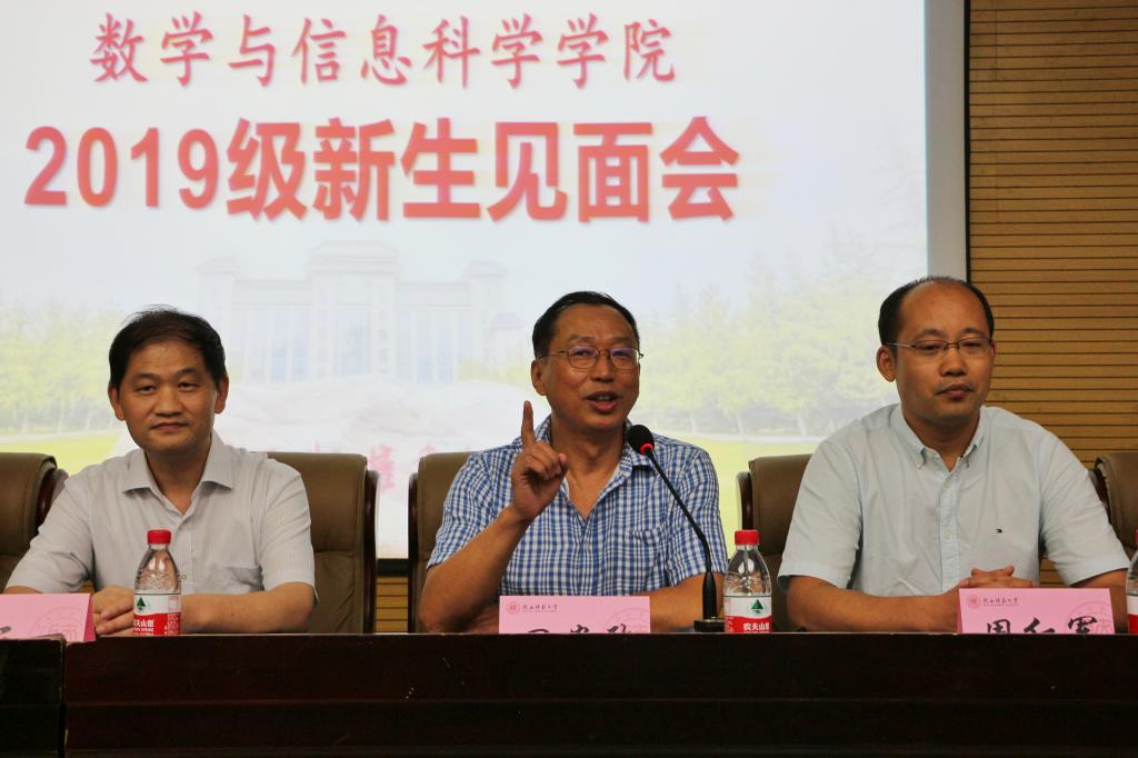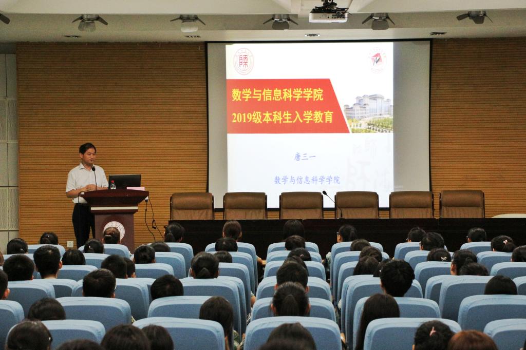 会后,举行了首场2019级新生入学教育报告会,经理唐三一教授为全体同学作报告。他为同学们详细介绍了公司的团队建设、团队力量等方面的情况;他还结合自己的求学之路,为同学们讲解了数学专业的学习方法、大学四年的学习生活、数学专业的特点、明确自身定位等方面的内容。