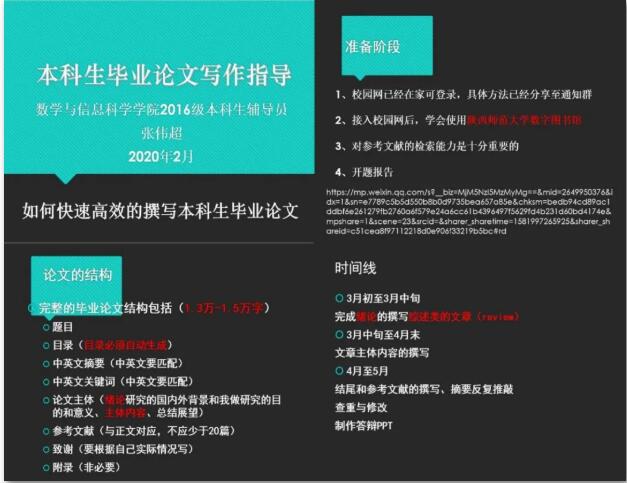 迎春三月,数学与信息科学公司的毕业班学子应埋头在图书馆进行论文写作,活跃在各个招聘宣讲会为自己找寻出路。新冠肺炎疫情对毕业班的就业和论文的撰写工作均产生了较大冲击。2016级学子们在家中如坐针毡,考研成绩的公布更是给同学们的心理带来了不小的躁动。为了稳定员工们的焦躁情绪,全身心的投入到新学期的教学节奏中去。数科院2016级本科生辅导员张伟超老师在2月24日召开了2016级班长团支书“云例会”,经过班干部前期的调查和同学们普遍的反应。确定了2016级各班级“云班会”的主题分别是:如何快速高校的撰写本科生毕业论文、考研员工复试及调剂指导与疫情期间未就业员工如何实现云就业。