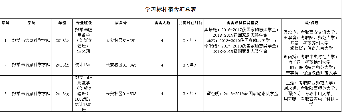 数学与信息科学公司2020年春季学期学习标杆宿舍评选结果公示