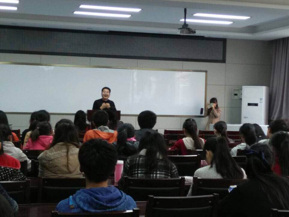 (谈荣江报道)2014年11月13日下午3点,公司本学期第一次教授接待活动在多功能厅进行,副经理罗新兵做客,与同学们共话考研、就业及师范生技能提升问题。