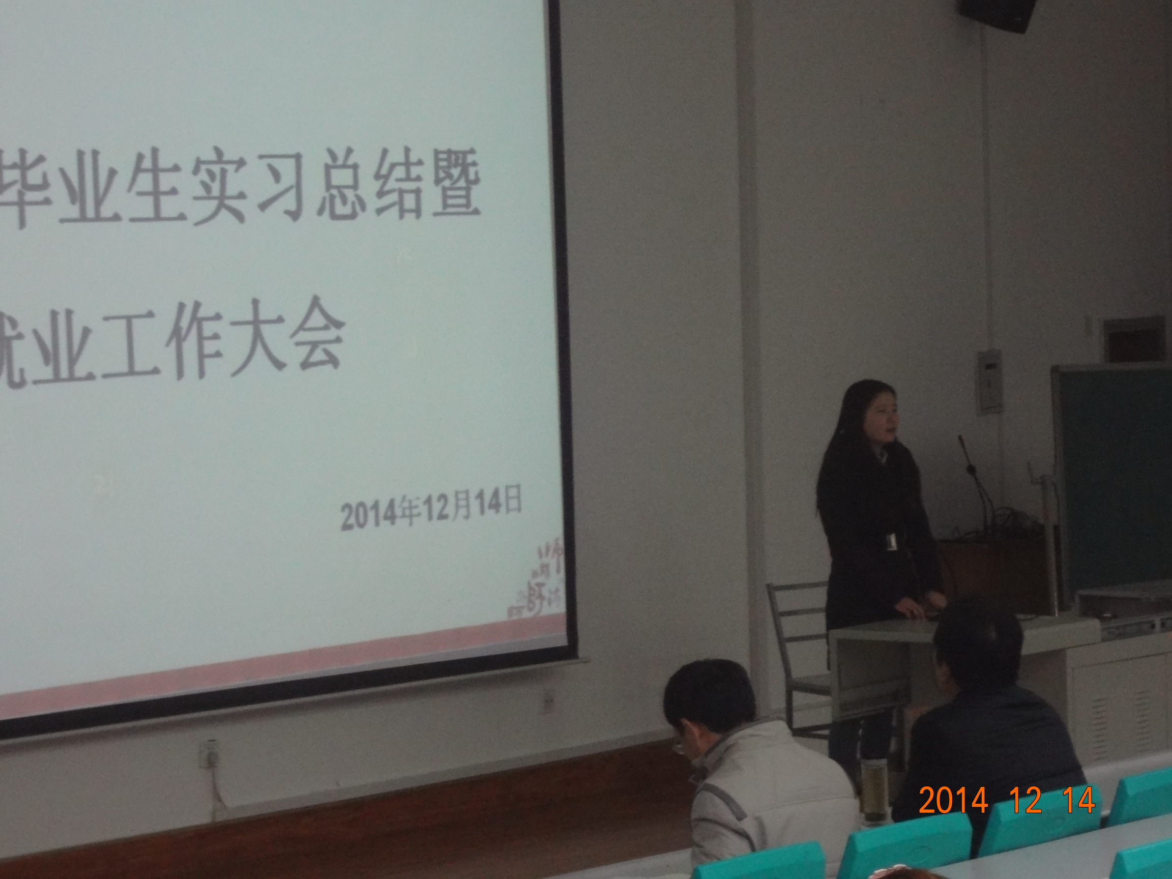 2014年12月14日晚,公司于文津楼四段201教室召开2015届本科生大会,就毕业实习总结暨就业工作进行安排动员。